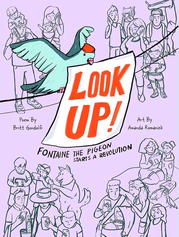 Fontaine, a pigeon, has had enough of the world’s obsession with technology. He wants to create change (a pigeon after my own heart) and gathers other birds to spark an “icky” revolution. This story is all about getting people to set down their phones, look up, and rediscover the joy of connecting with nature and one another.