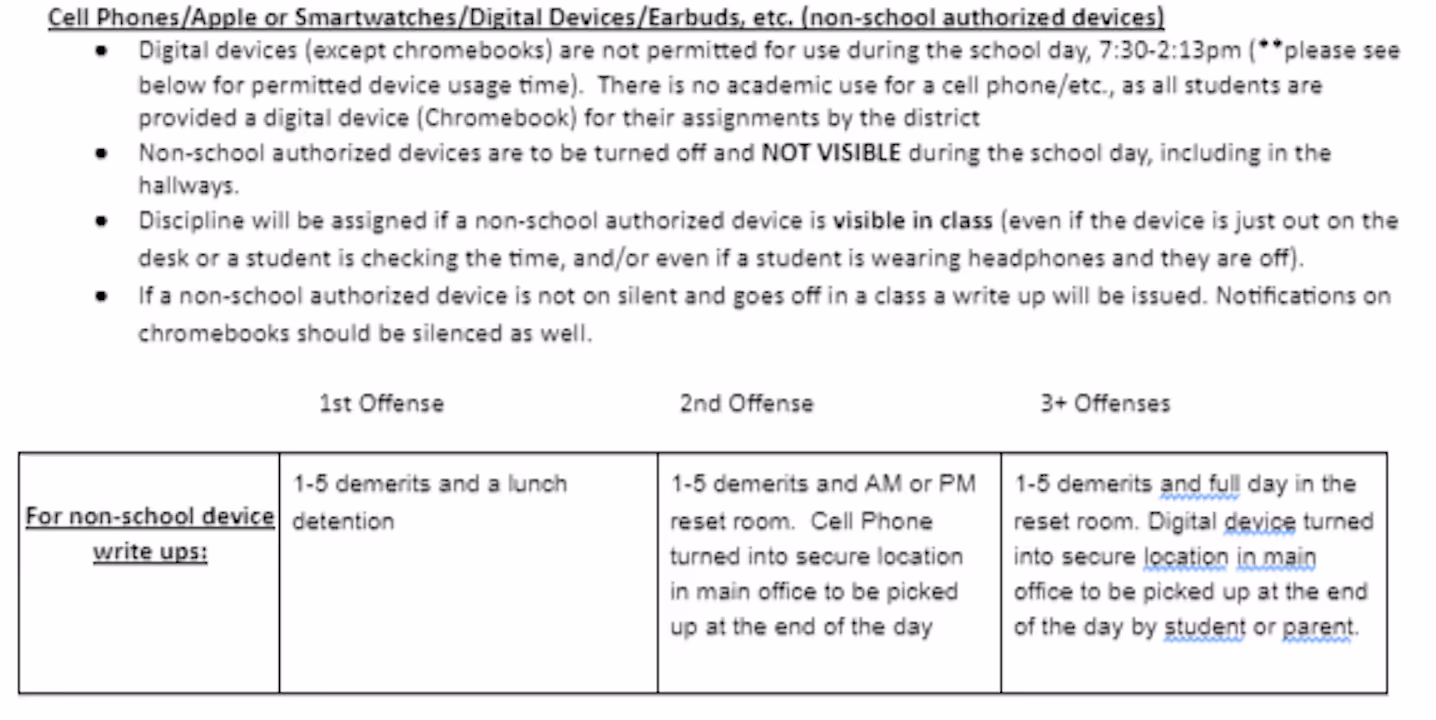At our Board of Ed meeting in August, we adopted the policy below and communicated to parents that we would be taking devices away if they interfere with learning.